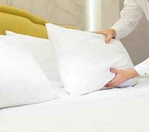 Hotels typically use durable, comfortable, and high-quality linens designed for repeated commercial laundering. DZEE Textiles offers blended bedsheets, cotton bedsheets, microfiber sheets, and a full pillow collection designed specifically for the hospitality industry.