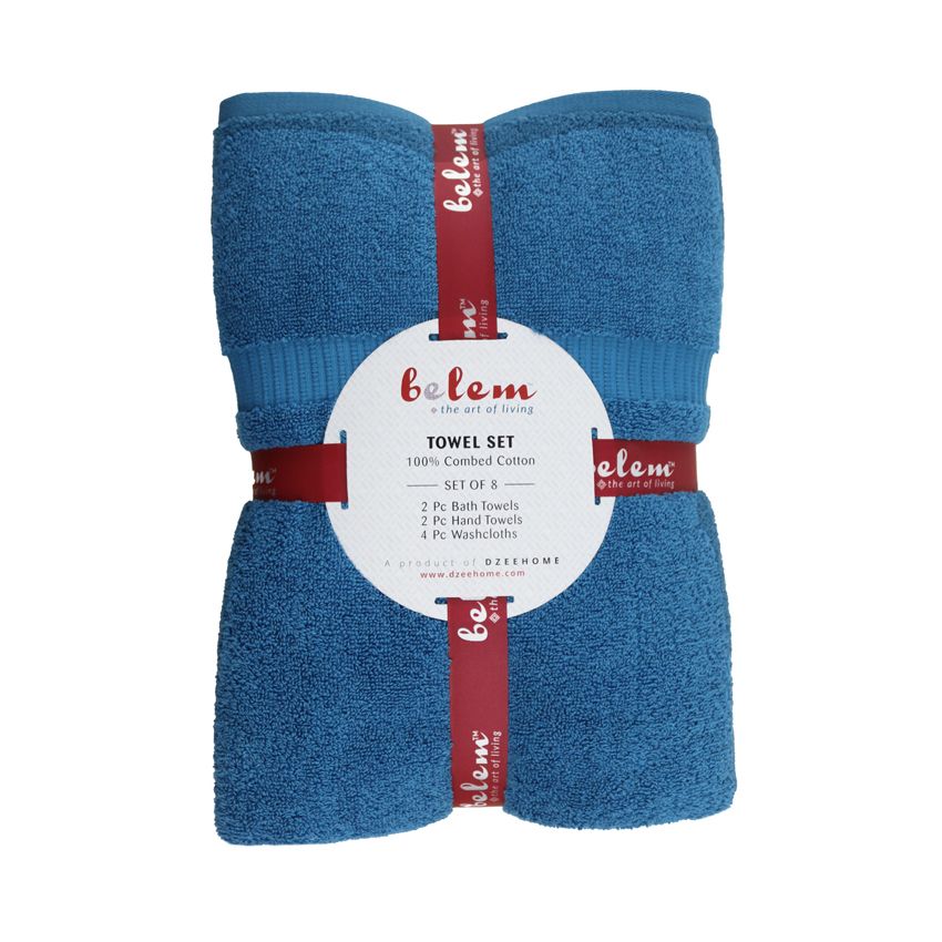 Complete Belem Evening Blue Combo Pack Details: • Wash Cloth: 13 x 13 inches, 1.80 Lbs/Dozen - 48 Pieces • Hand Towel: 16 x 30 inches, 4.50 Lbs/Dozen - 24 Pieces • Bath Towel: 27 x 50 inches, 14.00 Lbs/Dozen - 24 Pieces Total: 96 Pieces per Case Special Color: Evening Blue Design: Luxury Belize Border BUY MORE SAVE MORE Current Price: $239.95 per Case Bulk Case Discounts: 4+ Cases: $199.95 per Case