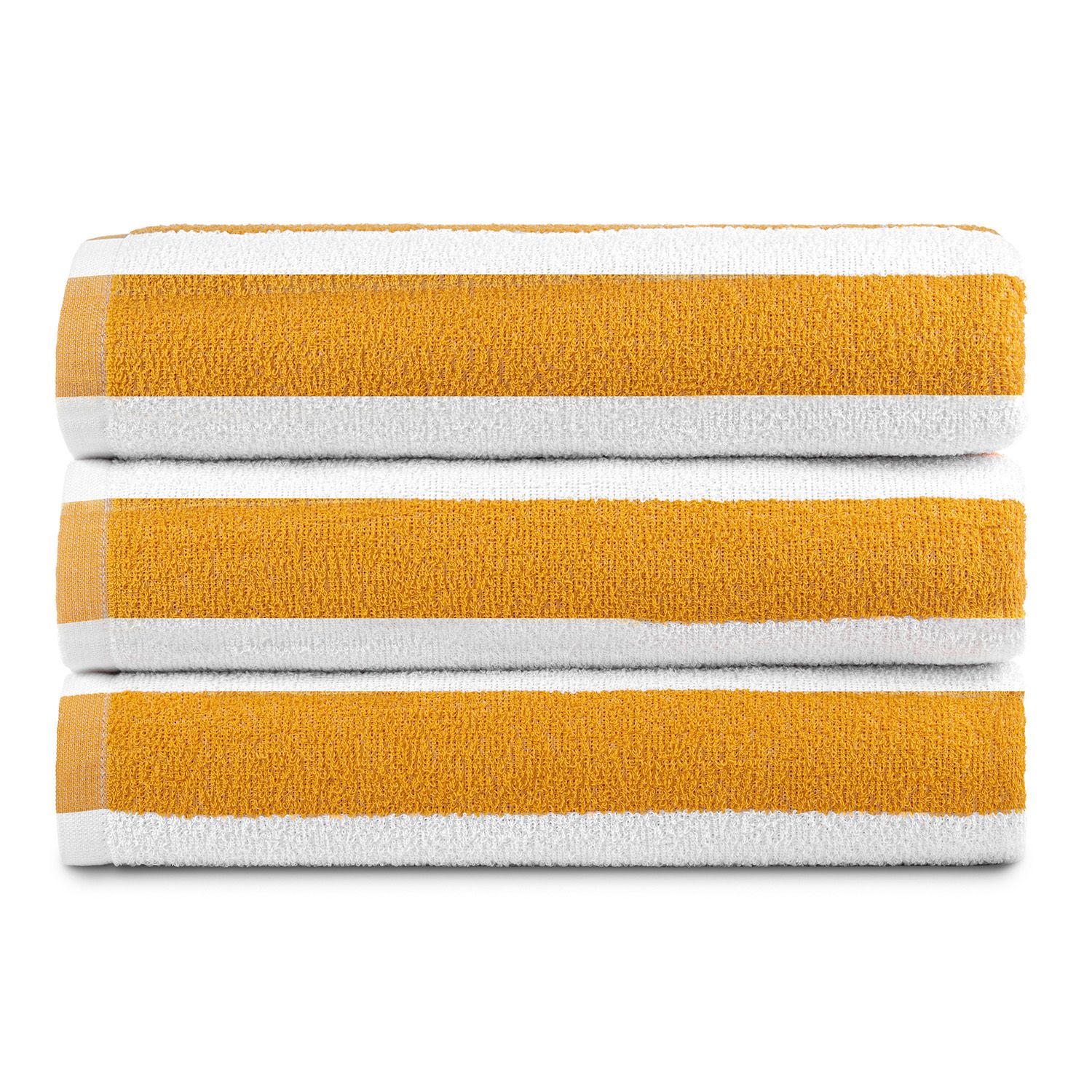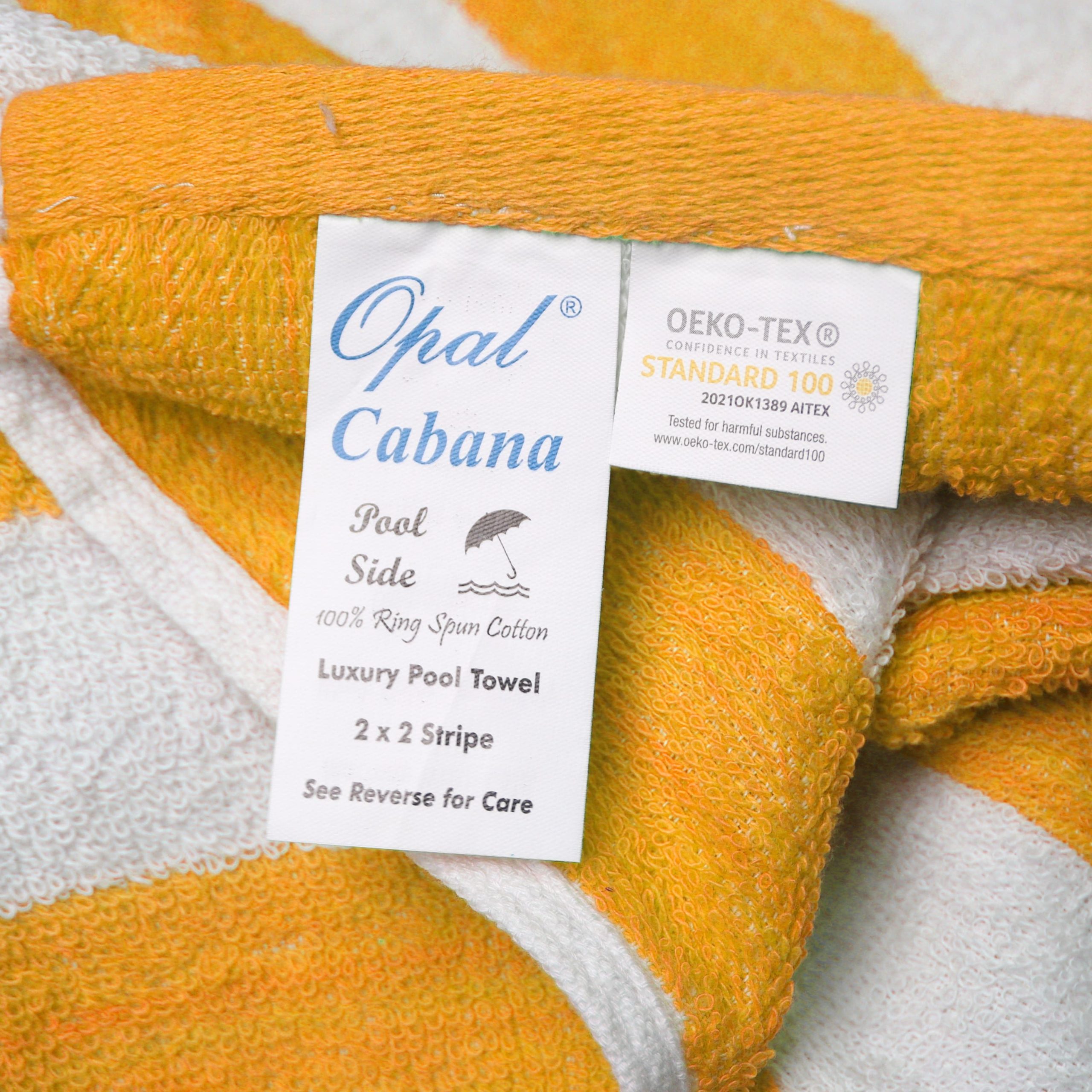 Material: 100% Cotton Yarn Size: 30 X 60 Weight: 9.00 Lbs/Dozen Color: Yellow Design: Cabana Stripes Packaging: 5 Dozen/Case